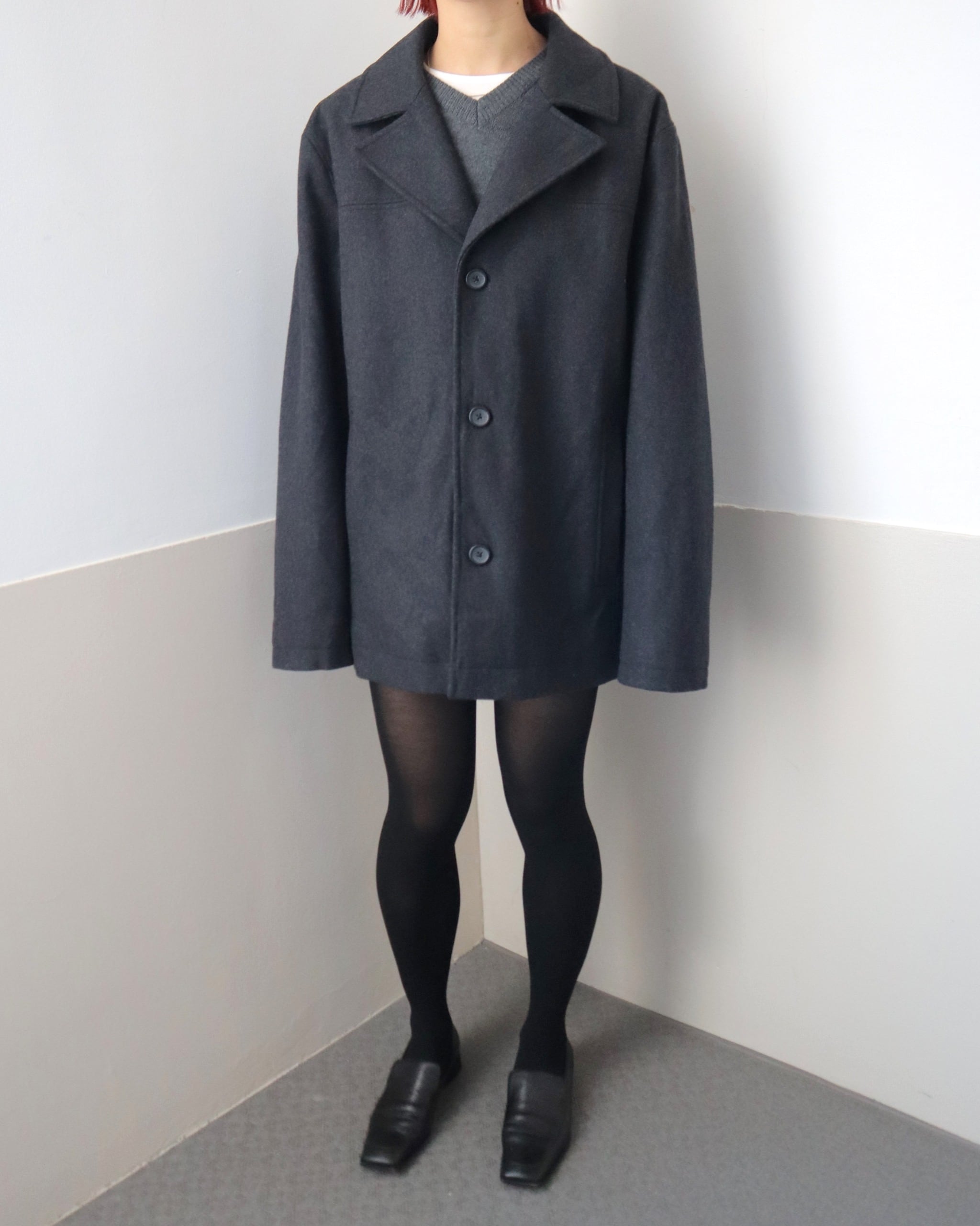 メンズのオープンカラーウールジャケット